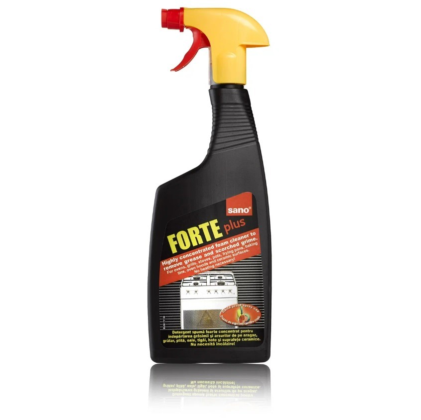 Высококонцентрированное пенящееся чистящее средство для удаления жира и пригоревшей грязи Sano Forte Plus. Лучшее средство для удаления подгоревшего жира с распытителем!