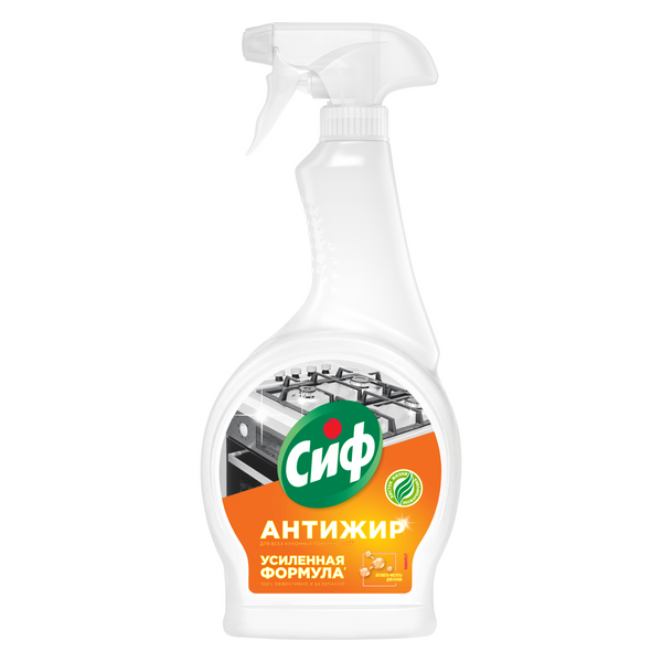 Спрей Cif Легкость чистоты Антижир борется даже с сильными загрязнениями и пятнами на плитах, вытяжках и духовках. Чистящее средство Cif безопасно для кухонных поверхностей, ежедневно контактирующих с пищей. Средство содержит соду и масла лимона и апельсина, мгновенно проникает вглубь загрязнений и удаляет их на 100%. Спрей быстро справляется со следами от пищи и пригоревшей еды, с засохшим жиром, копотью и нагаром, не оставляя разводов. Он подходит для чистки газовых, индукционных и стеклокерамических плит, духового шкафа, микроволновой печи, гриля, вытяжки, а также поверхностей из нержавеющей стали. Cif подарит чистоту вашей кухне и наполнит ее свежим цитрусовым ароматом