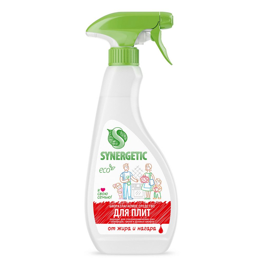 Биоразлагаемое средство для плит от жира и нагара SYNERGETIC - высокоэффективное щелочное средство для удаления жира, нагара, копоти, масляных пятен и накипи с плит и других кухонных поверхностей. Комплекс биоразлагаемых растительных тензидов и соды справляется с органическими загрязнениями за считанные минуты. Кальцинированная сода создает необходимую для расщепления пятен щелочную среду и растворяет масложировые компоненты загрязнений. Средство подходит для металлических, стеклокерамических, эмалированных плит и поверхностей, сковородок, противней, кастрюль, шампуров, решёток-гриль, пароконвектоматов, микроволновых печей, духовых шкафов, каменных столешниц, керамической плитки. Средство устраняет неприятные запахи, эффективно даже в холодной воде, полностью смывается, не оставляя разводов и царапин. Оно подходит для уборки в детских учреждениях, а также безопасно для септических установок. Попадая в среду септика, средство "понятно" для микроорганизмов и без труда распадается на простые соединения.