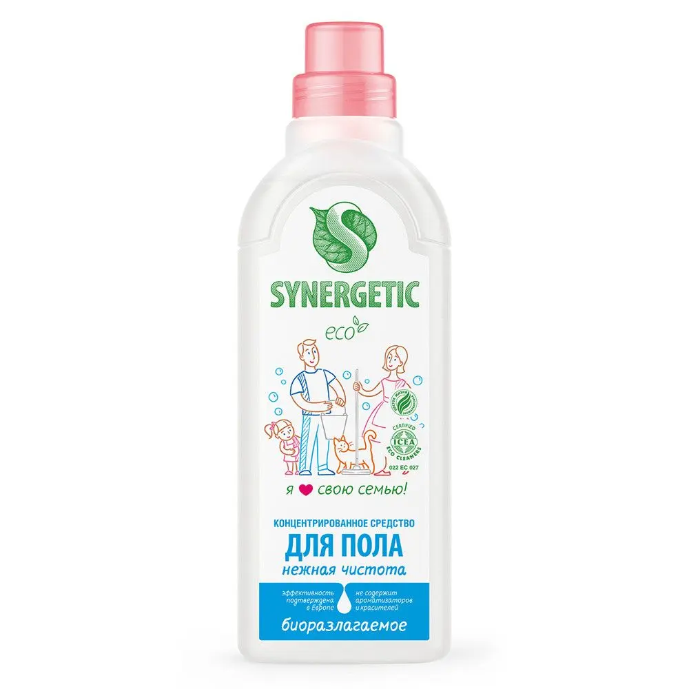 Биоразлагаемое концентрированное средство SYNERGETIC "Нежная чистота" - универсальное средство для ежедневной и генеральной уборки пола и других поверхностей: столов, стен, потолка. Уникальный комплекс растительных тензидов эффективно удаляет загрязнения и неприятные запахи даже в холодной воде. Комплекс зеленых хелатов предотвращает повторное оседание загрязнений на поверхности. Подходит для паркета, ламината, плитки, линолеума, металла, стекла, пластика, дерева. Средство не содержит красителей и ароматизаторов. Международный экологический сертификат ICEA подтверждает биоразлагаемость, безопасность и эффективность средства. Оно не требует смывания, не оставляет разводов на поверхности, подходит для уборки в детских комнатах и учреждениях, а также безопасно для домов с питомцами.