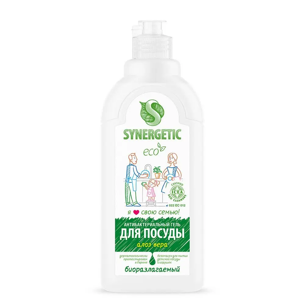 Биоразлагаемый концентрированный гель для посуды с антибактериальным эффектом SYNERGETIC - это экологичное, безопасное и эффективное средство для мытья всех видов посуды, в том числе детской, кухонного инвентаря и детских игрушек от любых видов загрязнений. Он не оставляет следов на посуде. Мягкие биоразлагаемые тензиды из растительного масла обеспечивают хорошее пенообразование и эффективно удаляют жир и запахи даже в холодной воде. Глицерин растительного происхождения в составе средства защищает кожу рук от сухости и раздражения. Гипоаллергенная парфюмерная композиция на основе эфирных масел аира, гальбанума, мяты, шалфея, лемонграсса, муската придает средству свежий и приятный аромат. Гель дерматологически протестирован в Европе. Международный экологический сертификат ICEA подтверждает биоразлагаемость, безопасность и эффективность средства. Биоразлагаемые компоненты безопасны для природы и человека и не вредят микрофлоре септических установок при использовании средства в соответствии со способом применения.