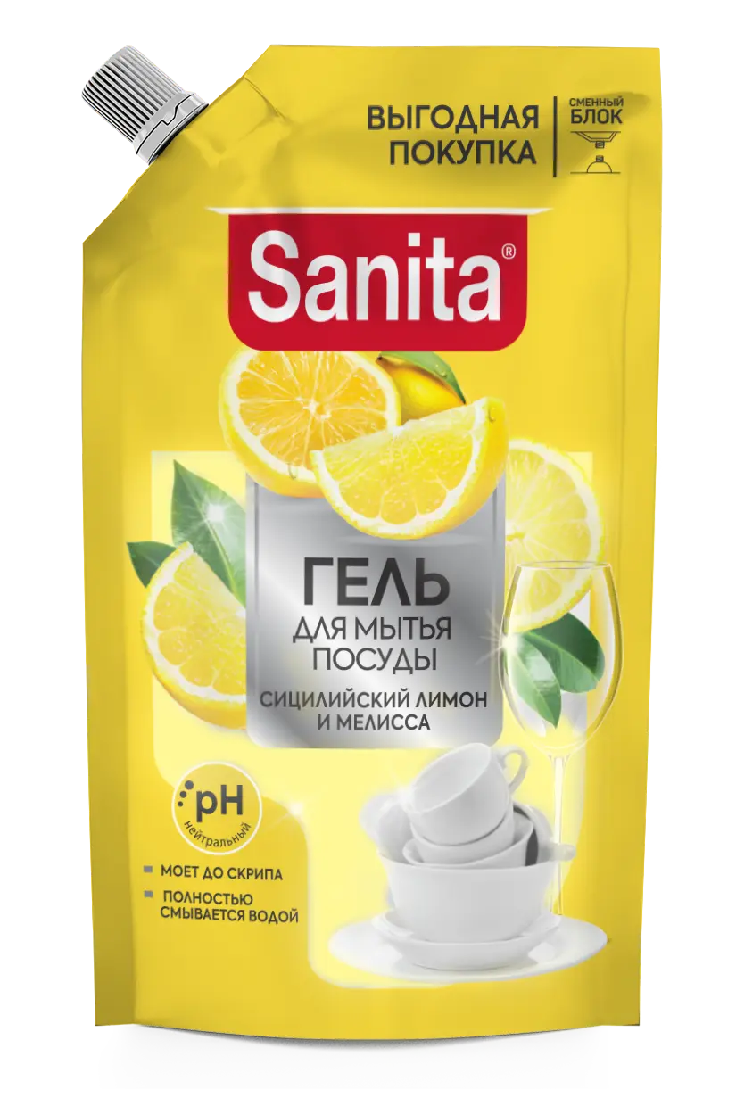 Sanita гель для мытья посуды сицилийский лимон и мелисса дой пак 900 г