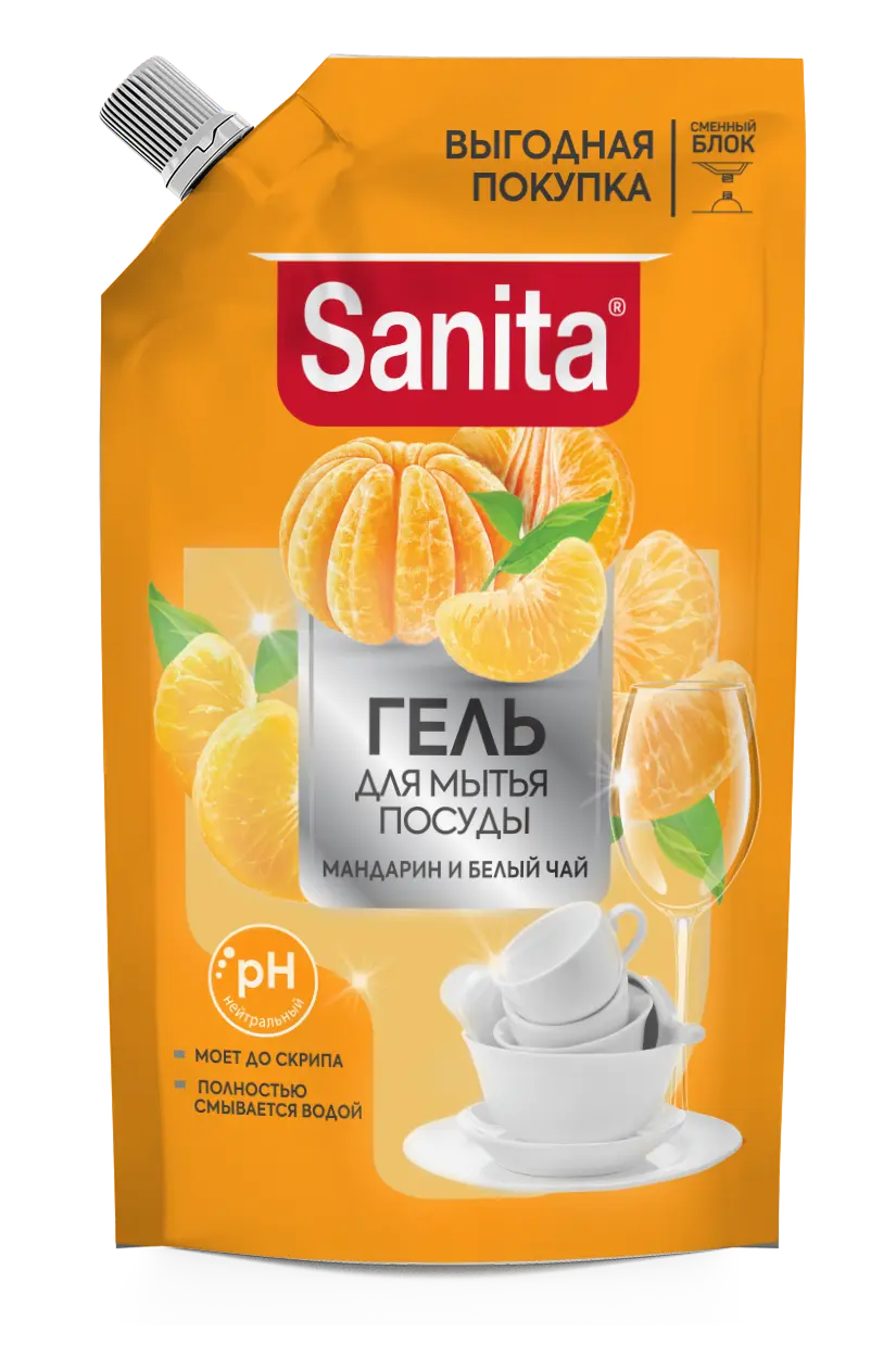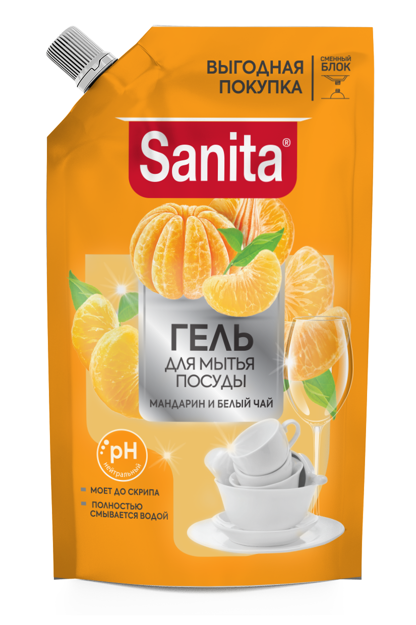 Sanita гель для мытья посуды мандарин и белый чай 900 г дой пак