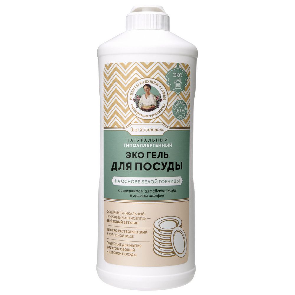 Натуральный гипоаллергенный эко гель для мытья посуды на основе белой горчицы сварен с душой и заботой по рецептам Агафьи Тихоновны Ермаковой. Он содержит натуральные компоненты, эффективность которых проверена столетиями. Идеально подходит для мытья посуды, фруктов, овощей и детской посуды. Прекрасно растворяет жир и удаляет различные загрязнения даже в холодной воде.