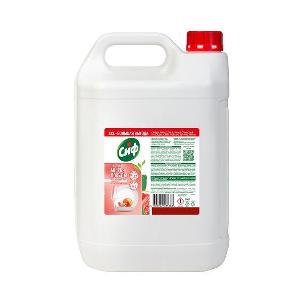 Порадовать любую хозяйку может новинка от бренда Сиф – ароматное средство для мытья посуды Сиф Красный апельсин и эвкалипт. Гель для мытья посуды Сиф – это густое, эффективное и экономичное средство, которое поможет отмыть 25 000 тарелок и даже больше'. Густая формула чистящего средства Сиф удаляет 100% стойкого жира’ и легко смывается даже в холодной воде. Средство подходит для мытья любой посуды (включая детскую), детских игрушек (кроме мягких), а также для мытья плит, холодильников и других поверхностей, контактирующих с пищей. Бережно к коже рук. Больше не нужно переживать, что средство закончится в самый неподходящий момент - покупайте знакомые продукты в упаковке 5 литров. Большой объем – большая выгода’’! Жидкость для мытья посуды Сиф содержит натуральные масла апельсина и эвкалипта и обладает приятным ароматом: искрящийся сочный апельсин усилен ароматом сока лайма, смесью свежих цветов и эвкалипта.