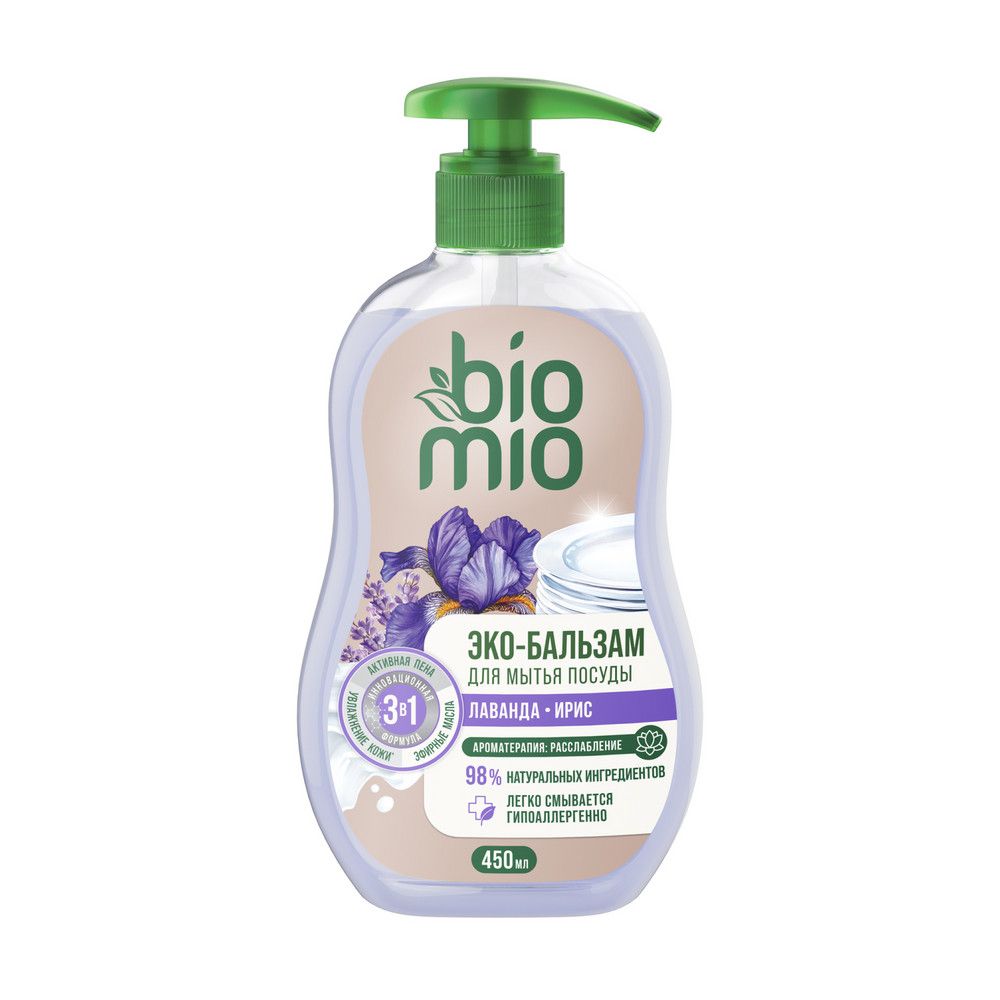 BioMio бальзам для мытья взрослой и детской посуды с экстрактом хлопка и ионами серебра лаванда и ирис 450 мл