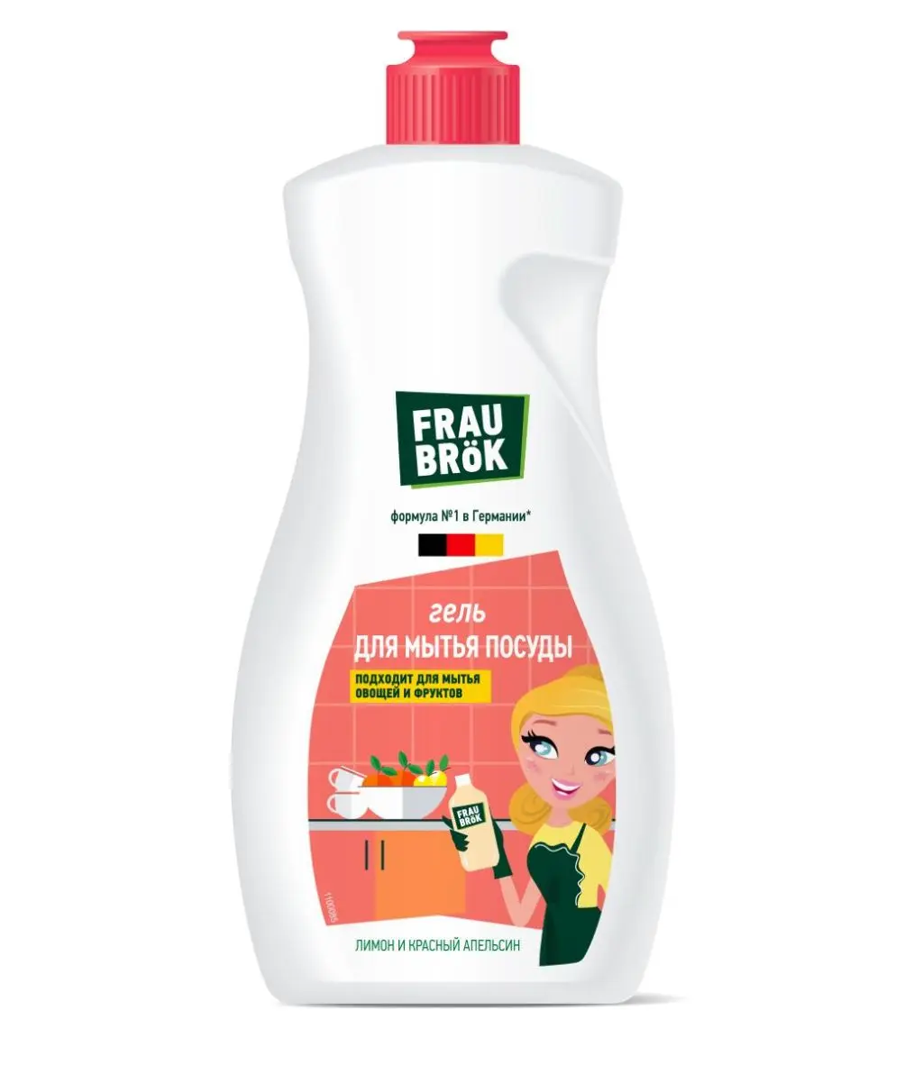 Привет, я – фрау Брок! И я в уборке знаю толк. Есть ли универсальное средство, которое подходит и для мытья посуды, и для удаления загрязнений с овощей и фруктов? Да, и это не фантастика – ведь оно перед тобой! Безопасная рецептура геля с маслом апельсина и соком лимона с добавлением проверенных немецких компонентов, без неионогенных ПАВ образует воздушную, нежную пену, которая не только легко отмывает жир и стойкие загрязнения, но и подходит для мытья овощей и фруктов. И при этом полностью с них смывается! Еще один бонус геля - яркие ароматы цитрусовых поднимут настроение даже во время домашних хлопот! FRAU BROK - и уборка в удовольствие. Проверим?