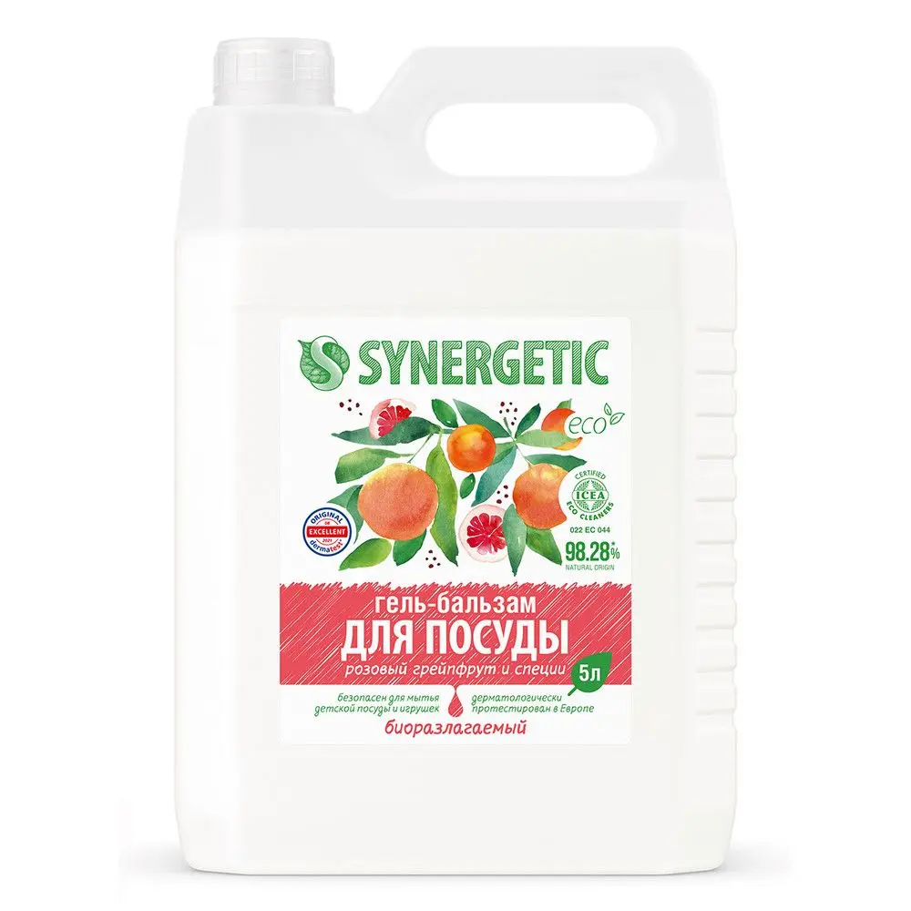 Synergetic биоразлагаемый гель бальзам для мытья посуды и детских игрушек розовый грейпфрут и специи 5 л