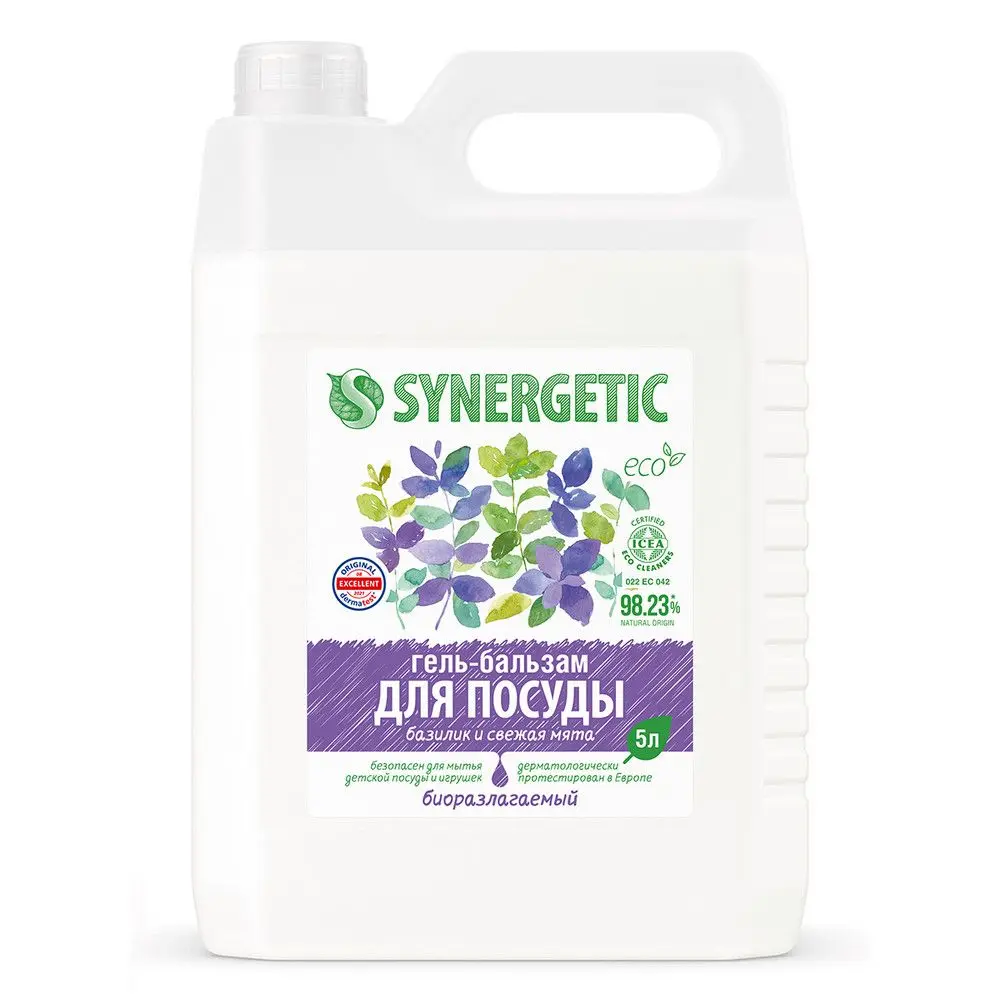 Synergetic биоразлагаемый гель бальзам для мытья посуды и детских игрушек базилик и свежая мята 5 л