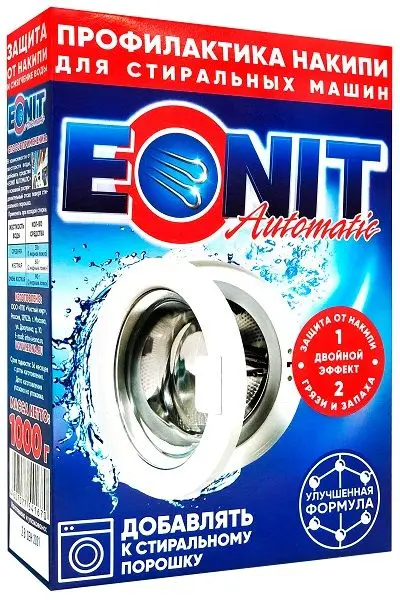 Комплексное средство для защиты от накипи и смягчения воды EONIT Automatic (ЭОНИТ), эффективно нейтрализует соли жесткости и защищает от накипи все жизненно важные части стиральных машин. Подходит для всех видов белья, включая цветное, шерстяное, синтетическое. Добавлять к стиральному порошку при каждой стирке и любой температуре.