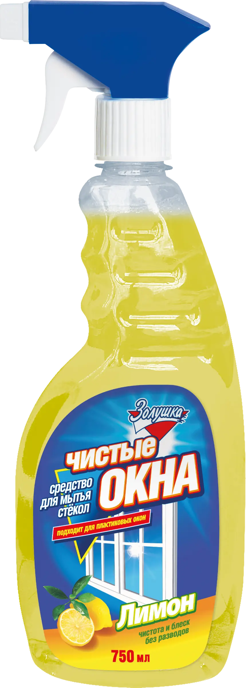 Золушка чистые окна средство для мытья окон лимон с триггером 750 мл