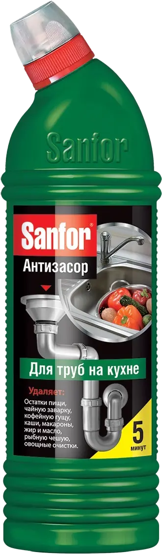 Sanfor для труб средство для очистки канализационных труб на кухне 5 минут 750 мл