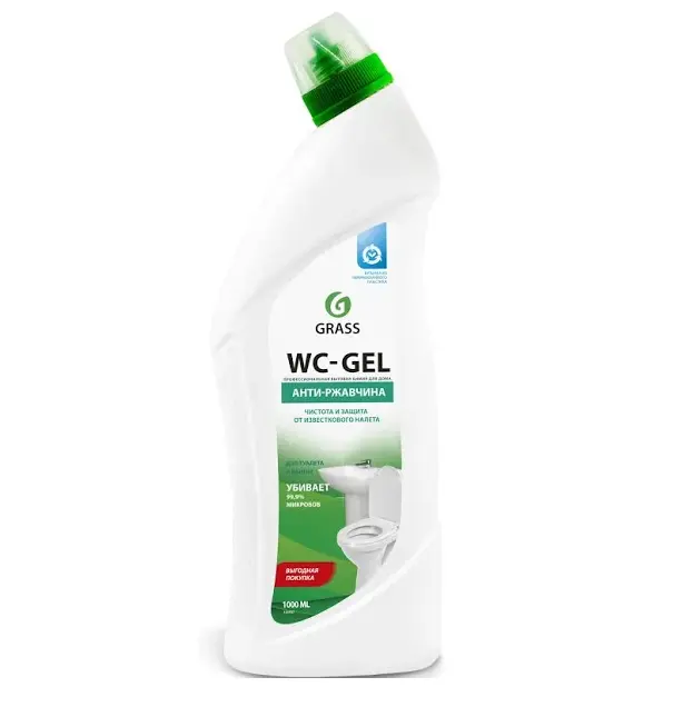 Кислотное чистящее средство для чистки унитазов, фаянсовых изделий, кафеля от известкового налета, подтеков ржавчины, солевых отложений. Способствует устранению неприятного запаха, убивает микробы. Гелеобразная структура чис-тящего средства обеспечивает его экономичный расход.