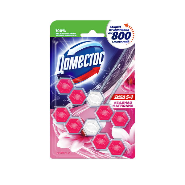 Доместос сила 5 в1 блок для унитаза ледяная магнолия защита от микробов и налета 2X55 гр