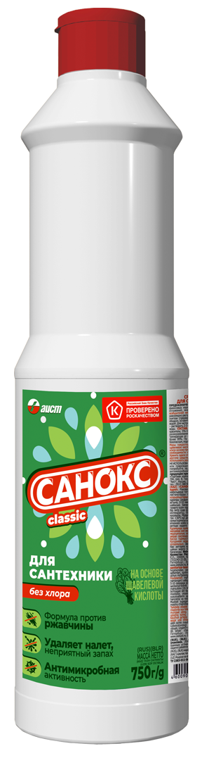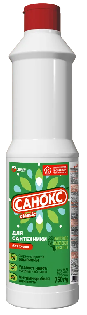 Благодаря превосходным чистящим качествам "Санокс" является лидером на российском рынке среди чистящих средств для сантехники.