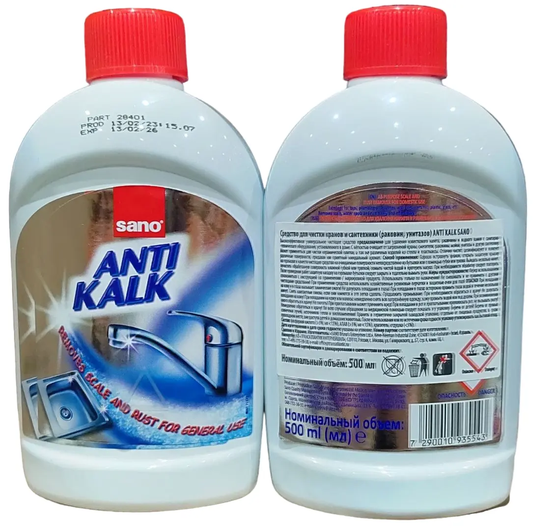 SANO анти калк средство для чистки кранов и сантехники раковин унитазов 500 мл