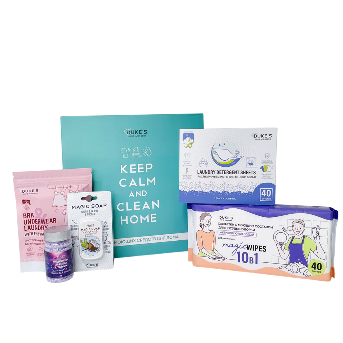 Dukes home wonders набор моющих средств для дома салфетки мыло для рук в листах кондиционер в гранулах листы для стирки