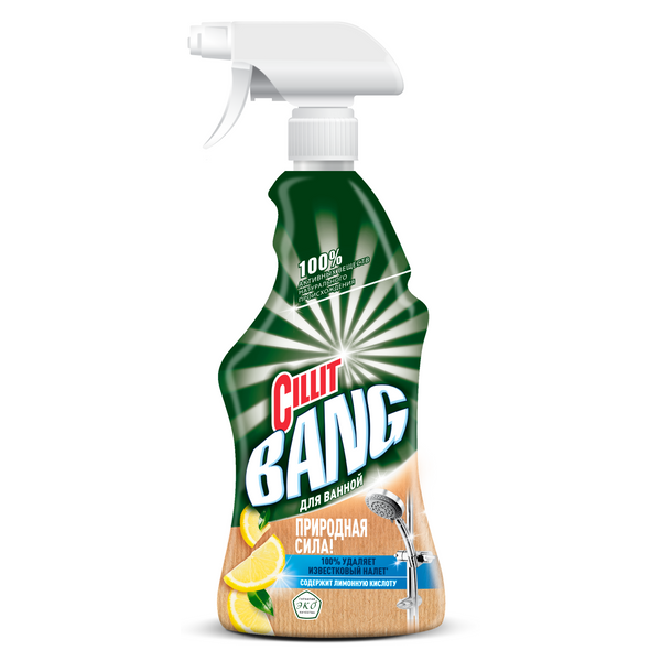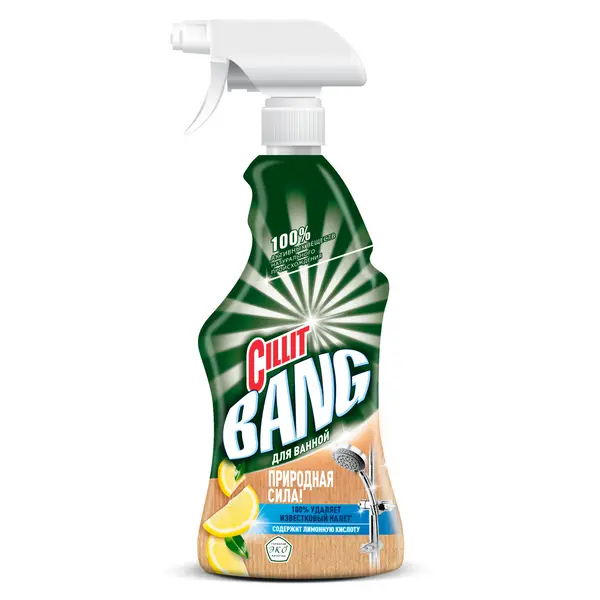 Чистящий спрей Cillit Bang природная сила для ванной, с добавлением лимонной кислоты. Содержит 100% активных веществ натурального происхождения. Идеально подходит для ежедневных загрязнений!