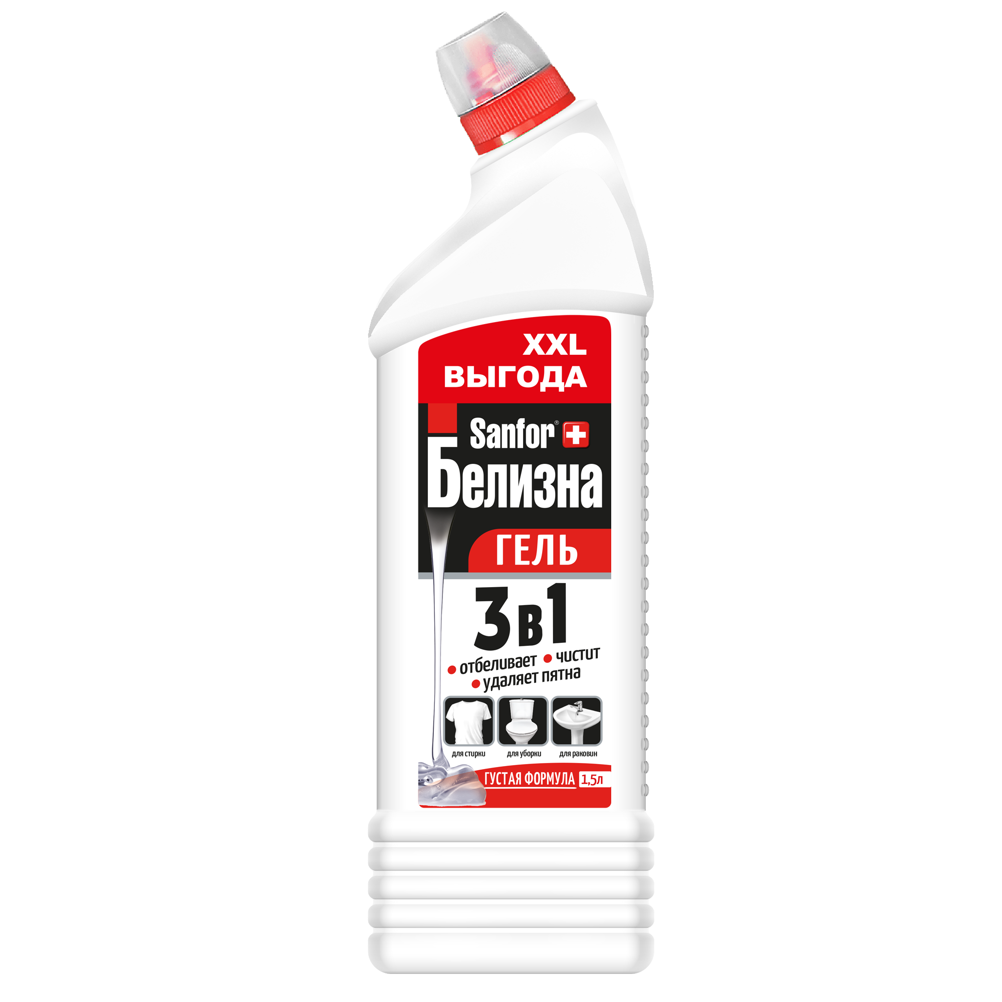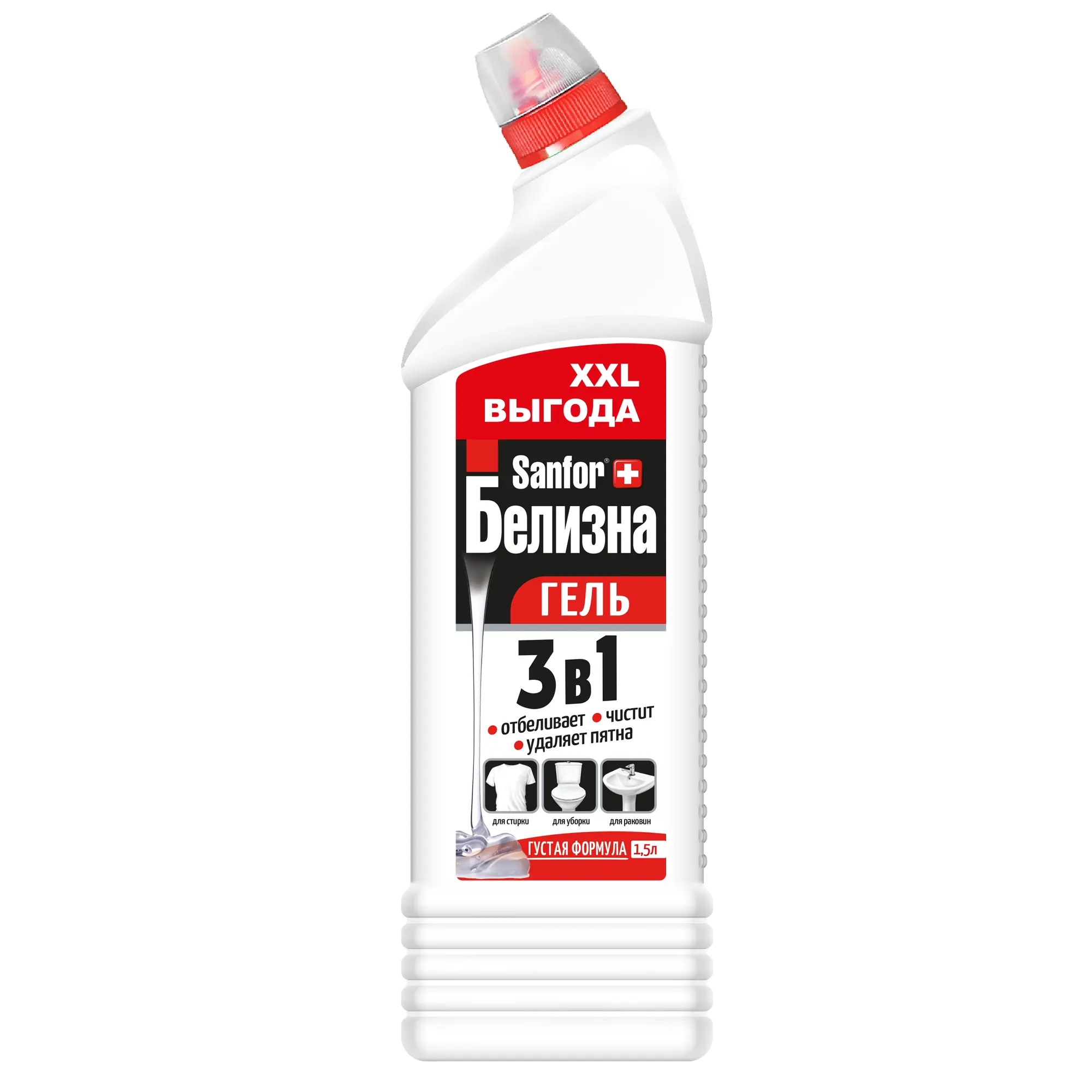 Средство для сантехники Sanfor Белизна 3в1 гель 1000 г. Многофункциональное средство с хлором комплексного действия для отбеливания и удаления пятен при стирке, а также для дезинфекции и чистки сантехники и труб. Многофункциональное средство отбеливает, дезинфицирует, чистит: ванны, раковины, унитазы, канализационные стоки, пол, кафель, пластик. Загущенная консистенция хорошо удерживает гель на вертикальных поверхностях. Средство сохраняет свои уникальные свойства в течение 12 месяцев с даты производства и при отрицательных температурах. Не рекомендуется использовать средство при стирке шелка, шерсти, непрочно окрашенных тканей