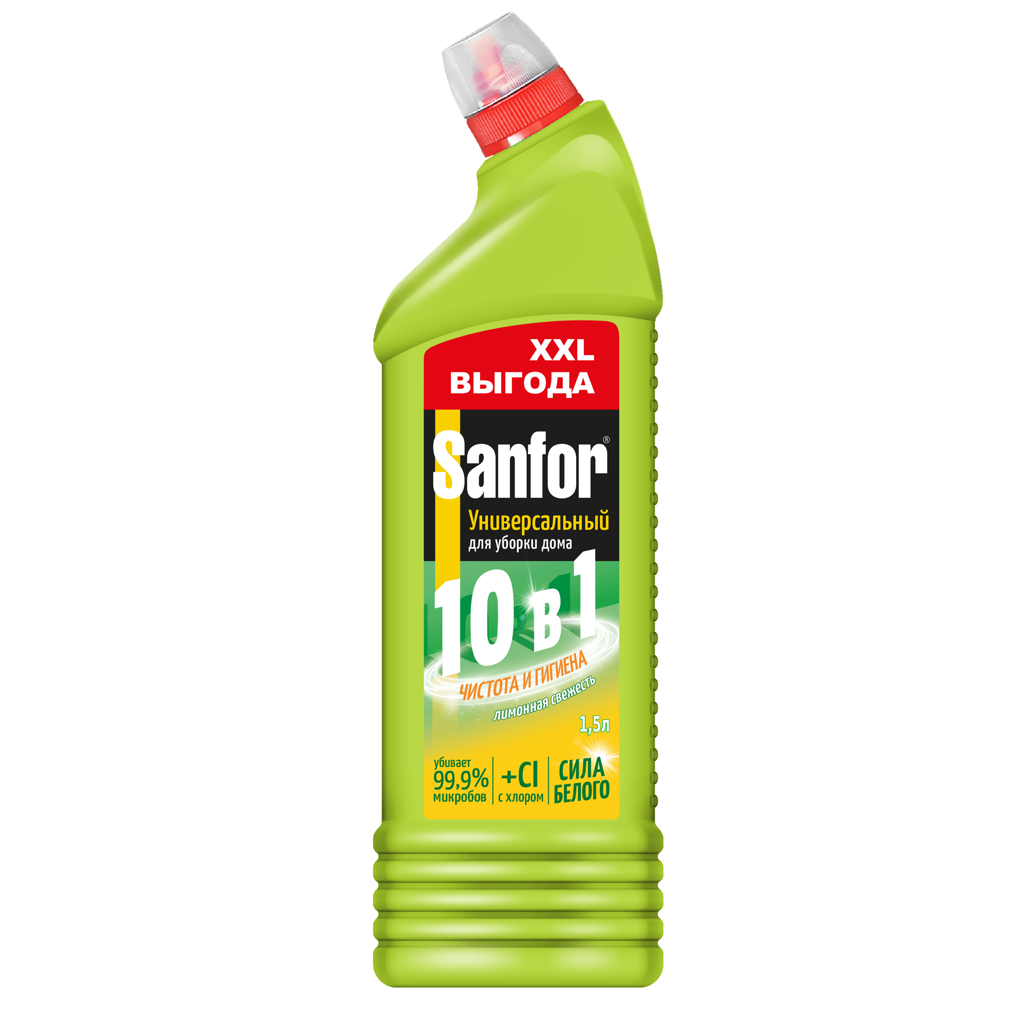 Sanfor Universal средство для чистки и дезинфекции 10 в1 лимонная свежесть 1500 мл