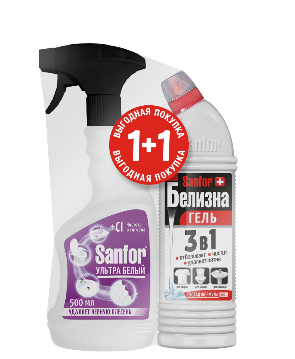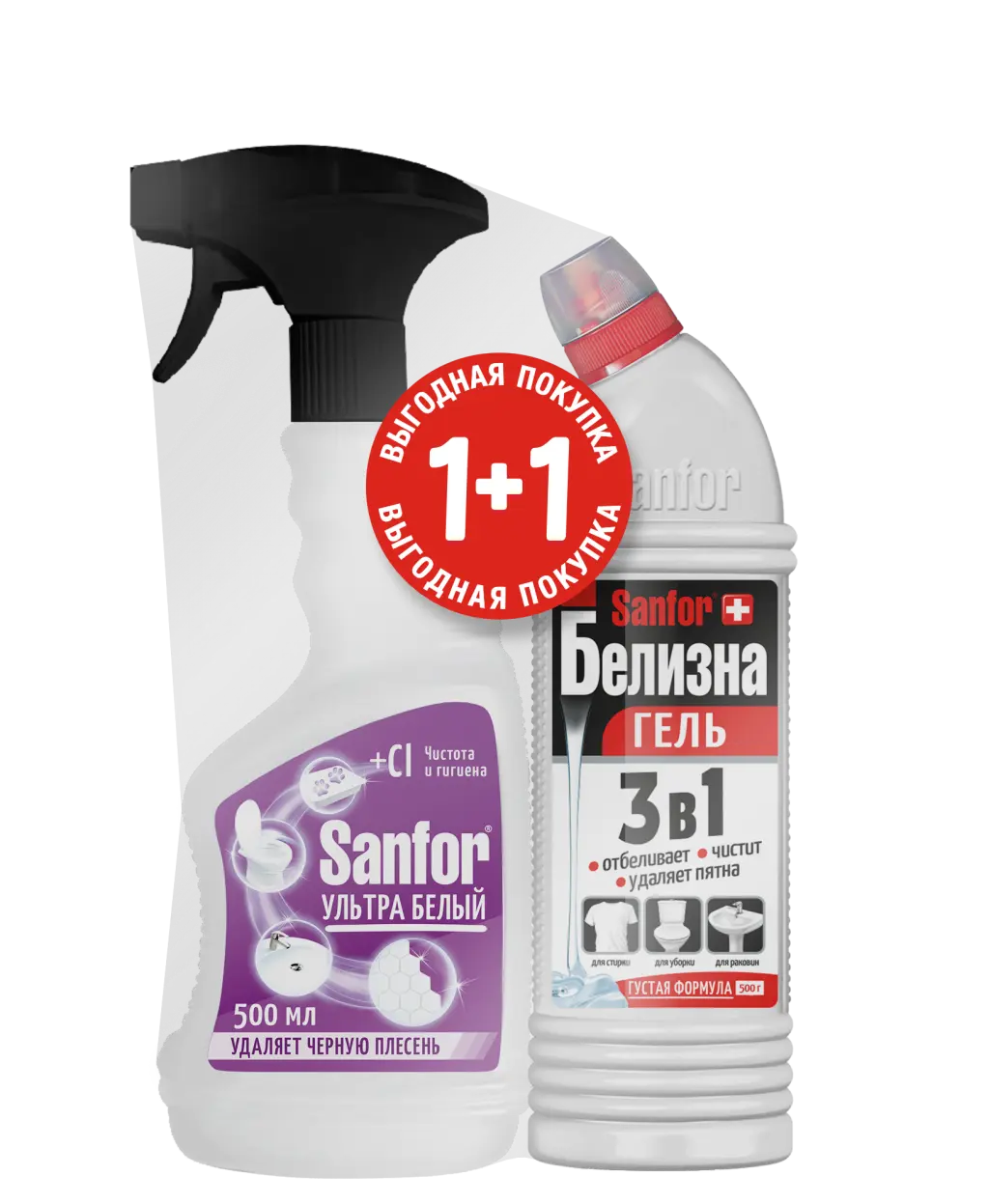 Набор sanfor спрей универсал ультра белый 500 мл + белизна гель 500 мл 1+1 выгодная покупка
