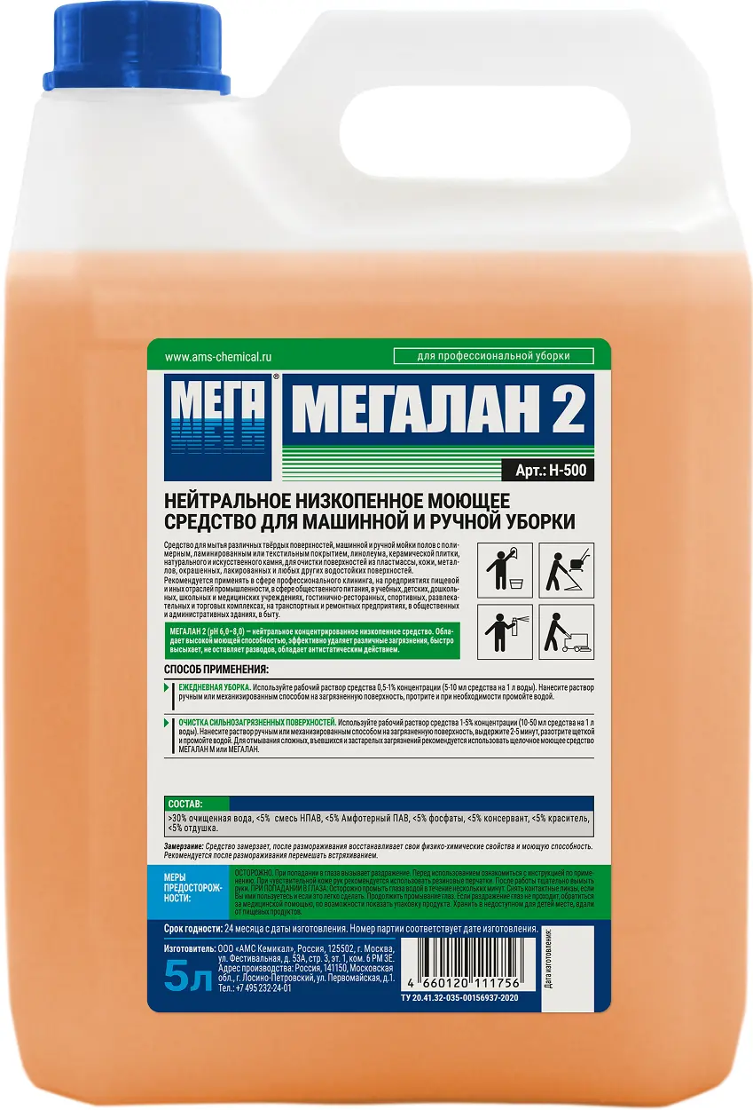 Мегалан 2 нейтральное низкопенное моющее средство для машинной и ручной уборки 5 л