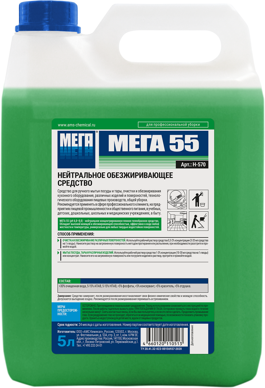 Мега 55 средство для кухни нейтральное обезжиривающее 5 л канистра