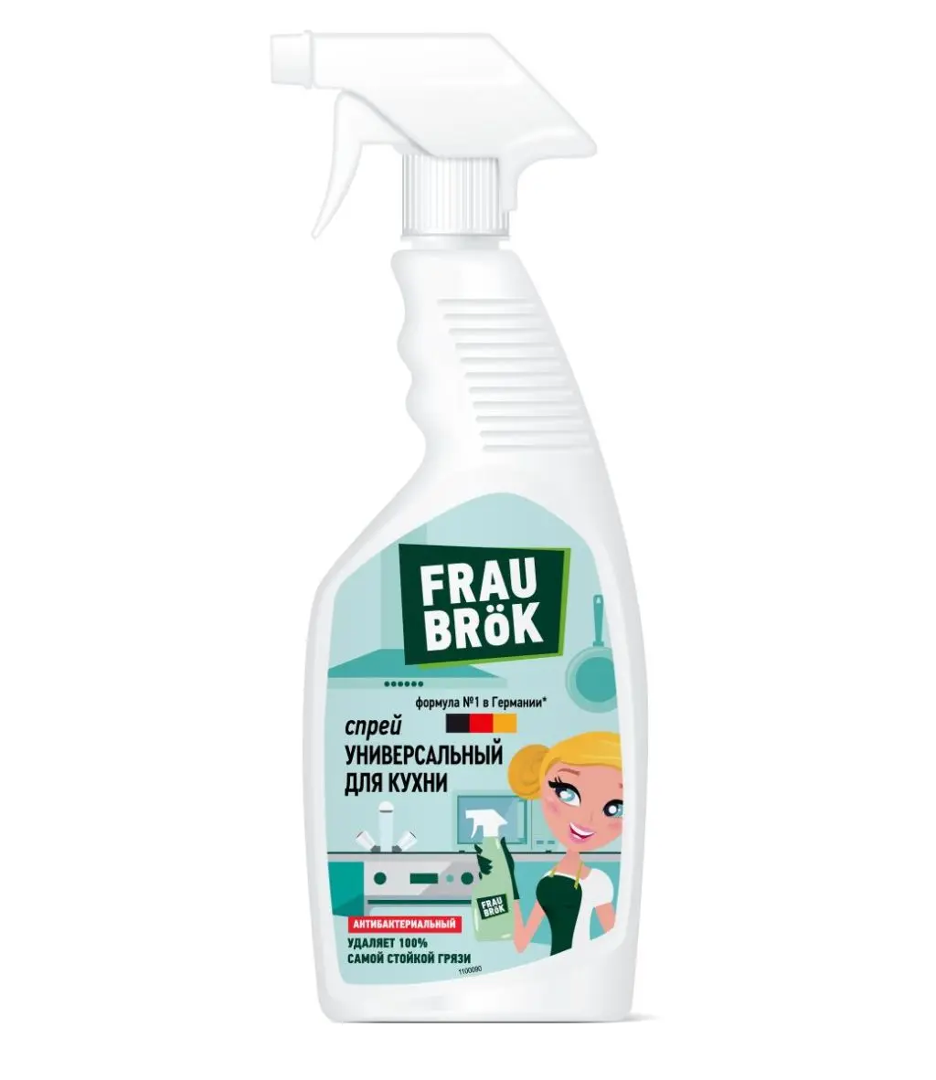 Привет, я – фрау Брок! И я в уборке знаю толк. Как навести чистоту в доме всего за несколько минут и при этом совсем не устать? Секрет уже у тебя в руках – это универсальный спрей для кухни Frau Brök! Его безопасная* рецептура с добавлением эффективных немецких компонентов и экстрактом лимона мгновенно делает чистыми и обеззараживает любые поверхности. Спрей идеален для любых столешниц – из дерева, камня, ПВХ. А также не оставит и следа от пятен на шторах, скатертях и мягкой мебели. FRAU BRÖK - и уборка в удовольствие!