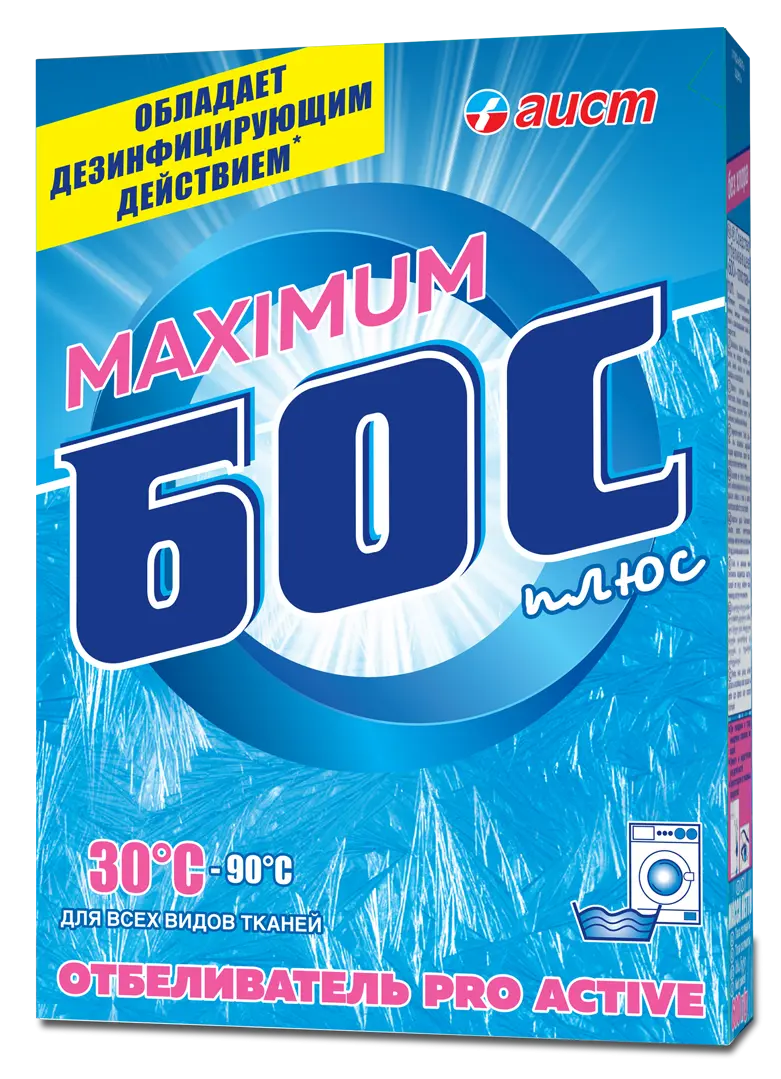 Усиленная формула средства «БОС» - плюс maximum с максимальным содержанием активного кислорода специально разработана для отбеливания без кипячения всех видов тканей, включая шерсть и шёлк, при низких температурах (30°С-50ºС).
