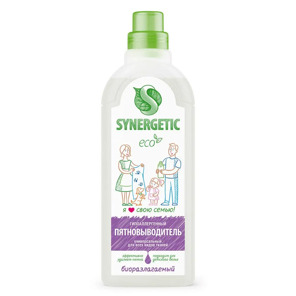 Биоразлагаемый гипоаллергенный пятновыводитель для одежды SYNERGETIC - универсальное средство для удаления загрязнений и выведения свежих пятен на всех видах тканей, в том числе белом, темном и цветном белье, деликатных тканях, шерсти, шелке и джинсовых тканях. Эффективен даже в холодной воде. Подходит для предварительного замачивания, ручной и машинной стирки. Экологичный и безопасный пятновыводитель полностью выполаскивается из волокон ткани и не остается на одежде. Средство гипоаллергенно, поэтому подходит для детского белья 0+ и одежды людей с чувствительной кожей. Концентрат создан из растительных компонентов: комплекса растительных Н-тензидов и ухаживающих добавок. Он не содержит хлора, ароматизаторов, красителей, фосфатов, агрессивных ПАВ. Биоразлагаемый пятновыводитель безопасен для септических установок. Попадая в среду септика, средство «понятно» для микроорганизмов и без труда распадается на простые соединения.