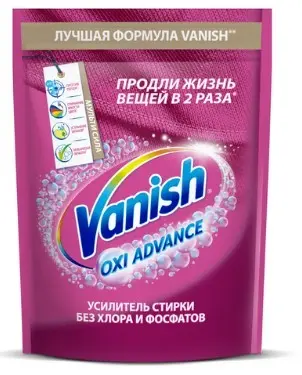 Vanish Мультисила – новое мультифункциональное средство без хлора для усиления качества стирки цветных тканей. Теперь Ваниш не только эффективно удаляет пятна, но и предотвращает окрашивание ткани, избавляет от неприятного запаха и производит гигиеническую обработку! Ваниш Мультисила – одно решение трех проблем! Продли жизнь любимым вещам с Vanish!