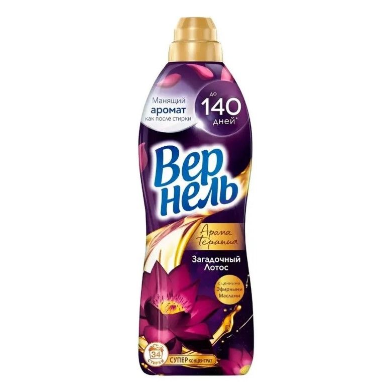 Концентрированный кондиционер для белья Вернель Ароматерапия Загадочный лотос подарит Вашему белью не только невероятную мягкость, но и магический аромат лотоса, а благодаря специальным аромакапсулам в составе кондиционер для стирки Вернель позволит наслаждаться интенсивным ароматом белья до 140 дней.