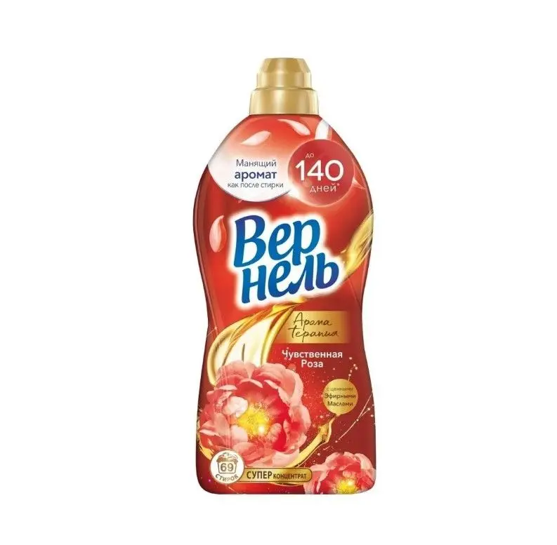 Вернель. Кондиционер для белья суперконцентрат Арома терапия Чувственная роза, 1.74л. Концентрированный кондиционер для белья Вернель Ароматерапия Чувственная роза 1740 мл (69 стирок) подарит белью не только невероятную мягкость, но и чувственный яркий аромат дикого гибискуса с нотами роз, а благодаря специальным аромакапсулам в составе кондиционер для стирки Вернель позволит наслаждаться интенсивным ароматом белья до 140 дней.