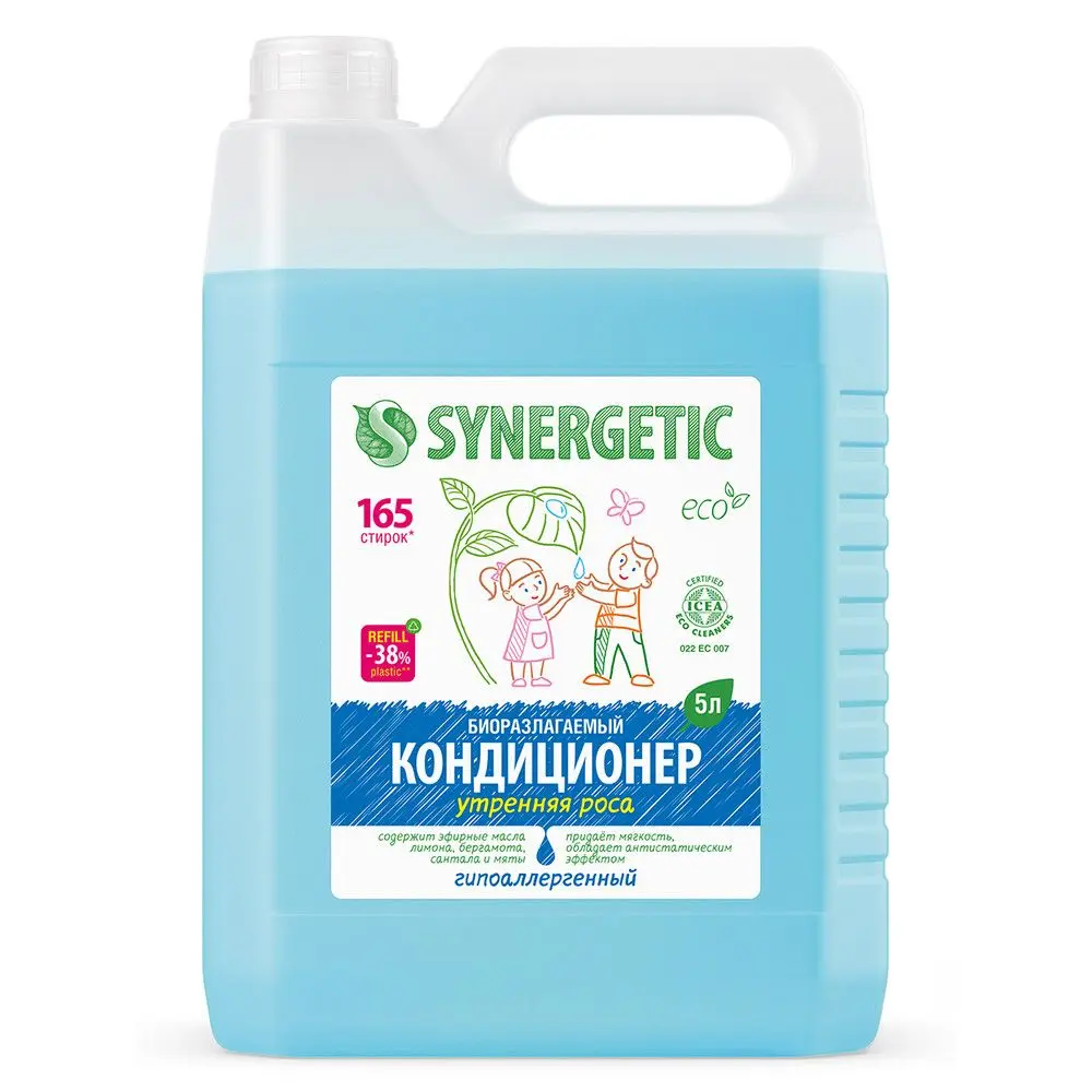 Synergetic кондиционер ополаскиватель для белья утренняя роса 5 л 165 стирок