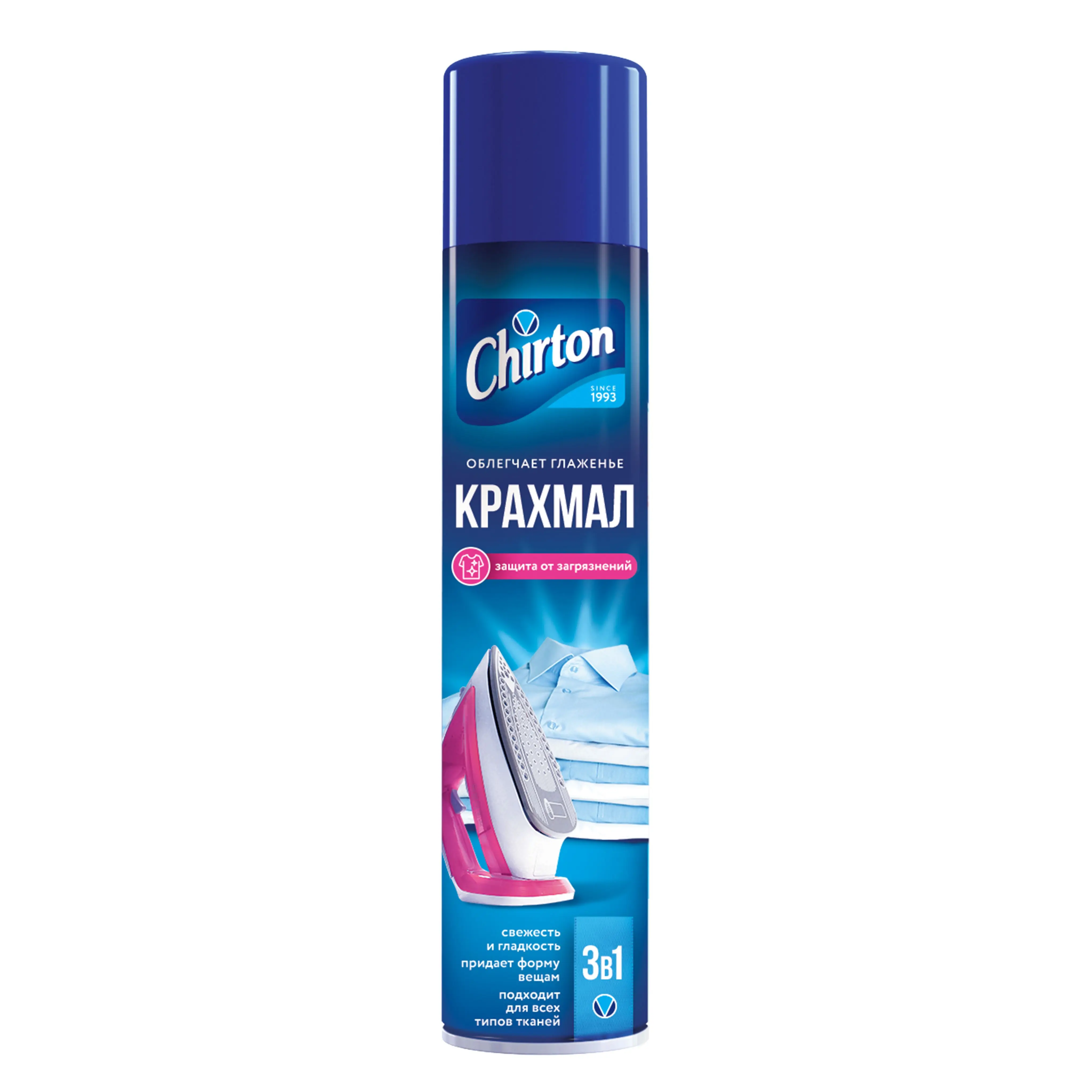 Аэрозоль-крахмал Чиртон предназначен для подкрахмаливания тканей при глажении. Улучшает скольжение утюга по ткани и значительно облегчает процесс глажения даже пересушенных вещей. Надолго придает свежесть и гладкую форму белью и одежде, делая их более устойчивыми к загрязнению.