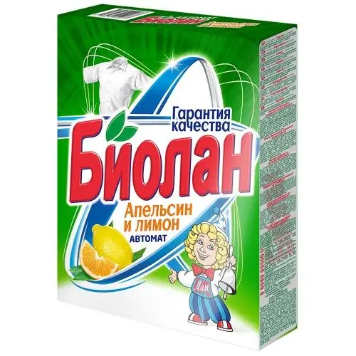 Стиральный порошок «БИОЛАН Апельсин и лимон Автомат» специальная формула защиты и сохранения цвета без фосфатов, цеолитов и красителей. Удаляет грязь и пятна с ярких окрашенных цветных тканей. Освежает белье, ароматизирует и сохраняет яркость красок вещей. Подходит для ежедневной стирки одежды всей семьи в автоматических стиральных машинах. Не требует использования дополнительных средств защиты стиральной машины от накипи.