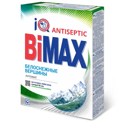 BiMax Белоснежные вершины стиральный порошок с усиленной системой отбеливания восстанавливает белизну и яркость светлых и белых вещей. Отстирывает сложные пятна от шоколада, ягод, кофе, красного вина, косметики, сажи, грязи и др. Подходит для автоматического режима и ручной стирки. Современная формула без фосфатов на основе комплекса биодобавок и отбеливателей обеспечивает безупречную чистоту, яркость цвета и полную выполаскиваемость с ткани. Бережно отстирывает и сохраняет структуру волокон ткани, защищает нагревательный элемент стиральной машины от накипи. Для достижения максимального эффекта отбеливания рекомендуется повысить температуру стирки до 60С. Сортируйте вещи перед стиркой, следуйте рекомендациям по температуре на ярлычках изделий, дозируйте порошок правильно. BiMAX – победитель премии Марка №1 в России в 2019 году в категории «Средства для стирки».