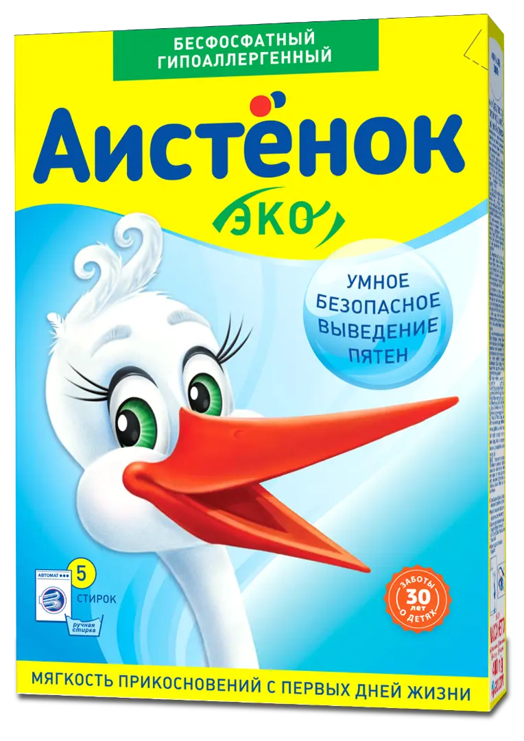 Бесфосфатное экологичное средство для стирки одежды и белья детей и людей с очень чувствительной кожей "АИСТЕНОК" с первых дней жизни.