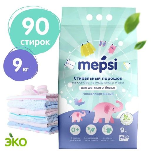 Mepsi стиральный порошок на основе натурального мыла для детского белья 9 кг