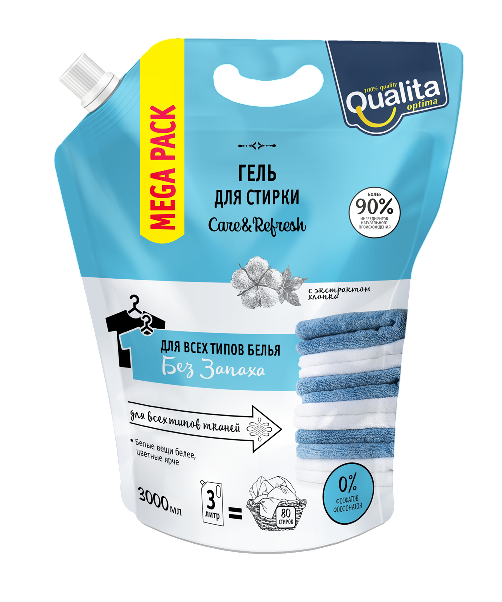 Qualita гель для стирки универсальный без запаха дой пак 3000 мл
