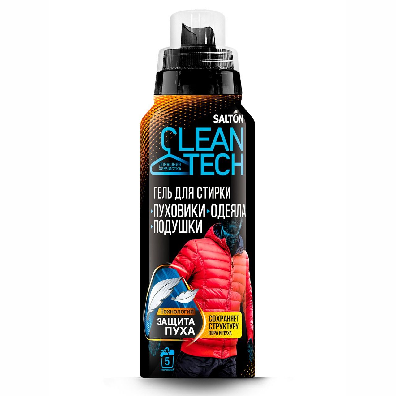 Гель для стирки изделий из пуха Salton CleanTech бережно и эффективно удаляет загрязнения и сохраняет ткани
