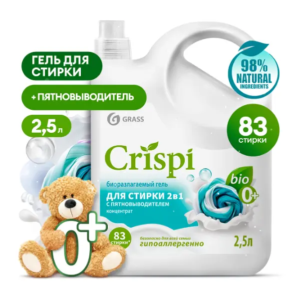 Crispi гель для стирки 2 в 1 с пятновыводителем концентрат флакон 2500 мл