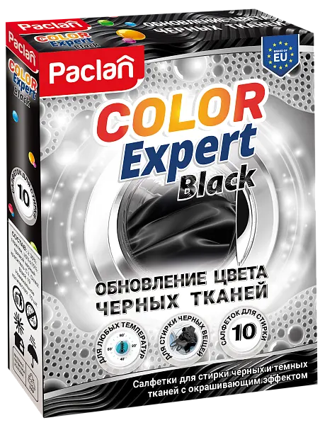 Черная одежда теряет насыщенность с каждой стиркой? Забудьте об этом! Одноразовые салфетки Color Expert Black не просто освежают цвет — они восстанавливают и поддерживают его. В составе салфеток — специальные компоненты, которые активизируются в воде. Во время стирки они аккуратно окрашивают ткань, возвращая черным и темным вещам глубину цвета. Даже если одежда уже выцвела, салфетки помогут вернуть ей прежнюю насыщенность.