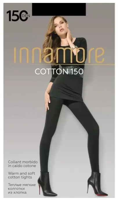 Плотные теплые колготки Innamore Cotton 150 den (Иннаморе Котон 150) с высоким содержанием хлопка, однородные по всей длине. Х/б ластовица, комфортные швы и укрепленный мысок.