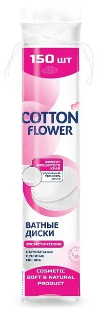 Cotton Flower — косметическая ватная продукция, которая сочетает в себе хорошее качество и доступную цену. Диски обеспечивают деликатный и эффективный уход и демакияж.