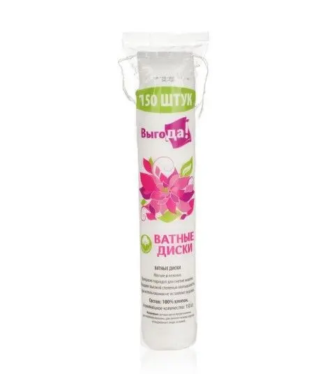 Мягкие и нежные ватные диски Выгода прекрасно подходят для снятия макияжа, для личной гигиены взрослых и ежедневного ухода за кожей. Обладают высокой степенью впитываемости, при использовании не оставляют ворсинок.