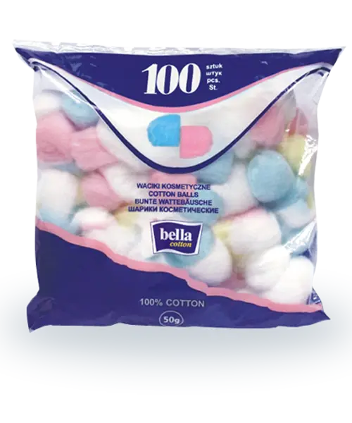 BELLA Шарики ватные BELLA COTTON цветные 100шт