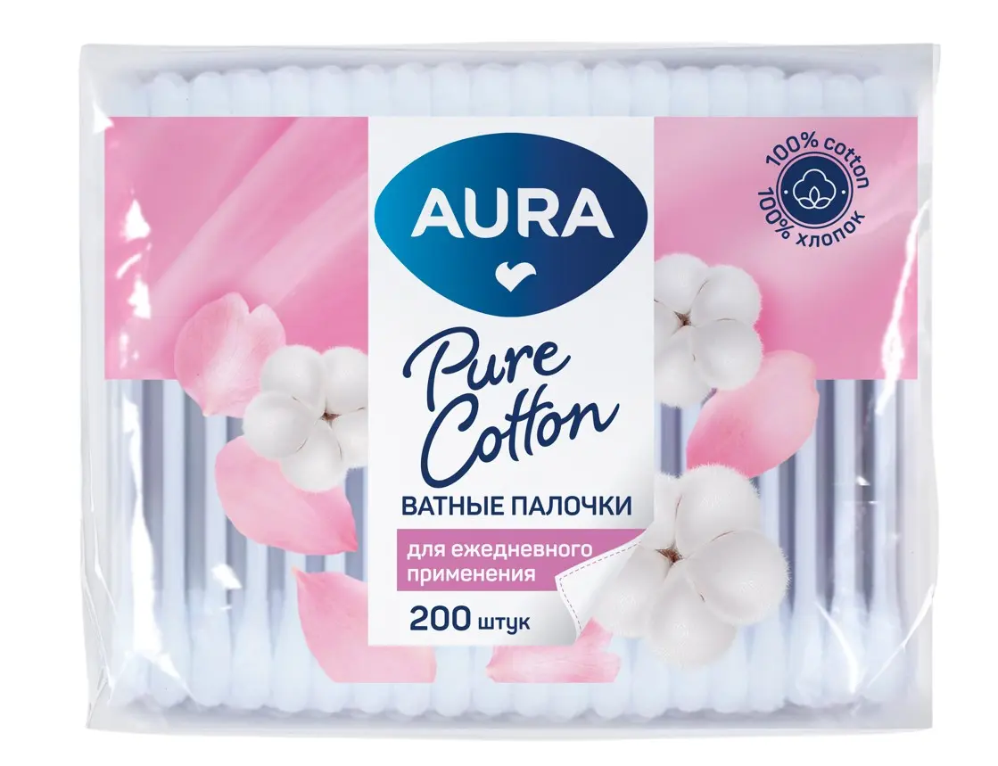 Ватные палочки Aura предназначены для косметических и гигиенических целей. Ватная головка сделана из 100% хлопка, который отлично впитывает влагу и не оставляет ворсинок. Эластичный пластиковый стик на котором прочно закреплен хлопок обеспечивает мксимально комфортное использование. Палочки гипоаллергенны, хорошо удаляют загрязнения, подходят для нанесения и снятия макияжа.
