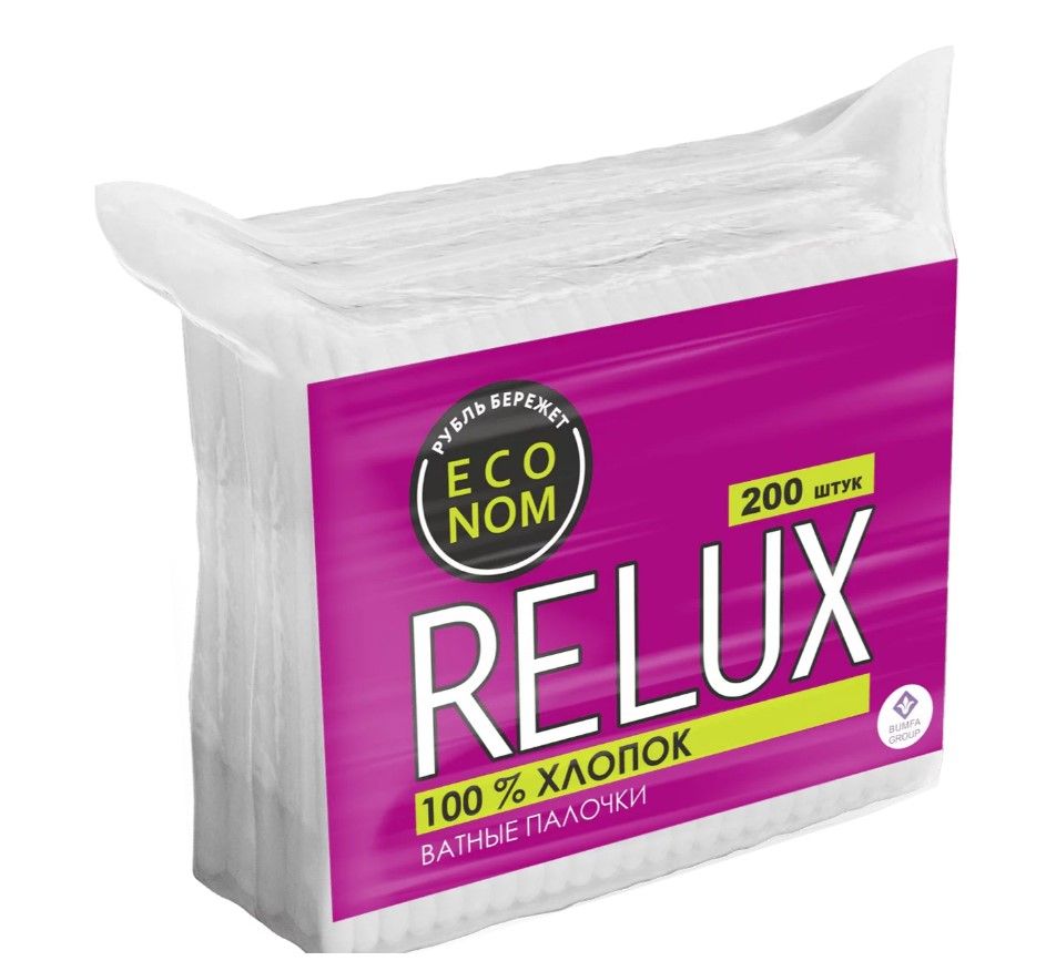 RELUX ватные палочки изготовлены из 100% хлопка и надежно зафиксированы на пластиковом стике. Палочки предназначены для гигиенических и косметических процедур, незаменимы при корректировке и нанесении макияжа