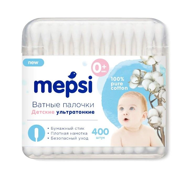Mepsi детские ватные палочки ультратонкие 400 шт